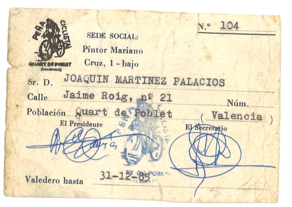 -¿Desde cuándo eres socio de la Penya Ciclista Quart de Poblet?