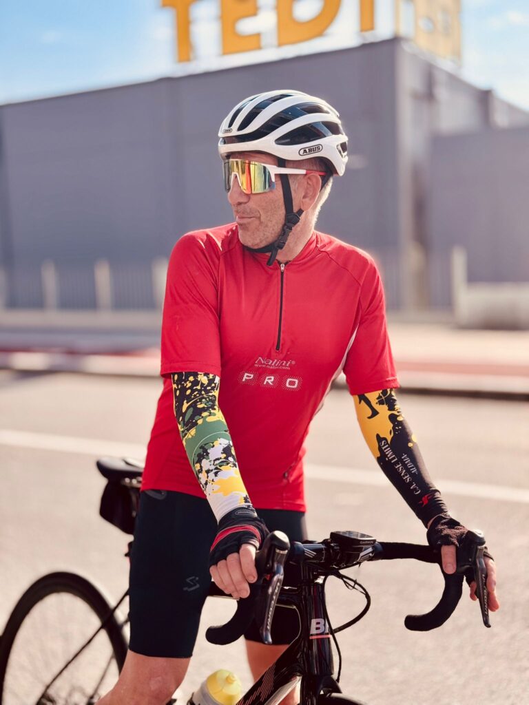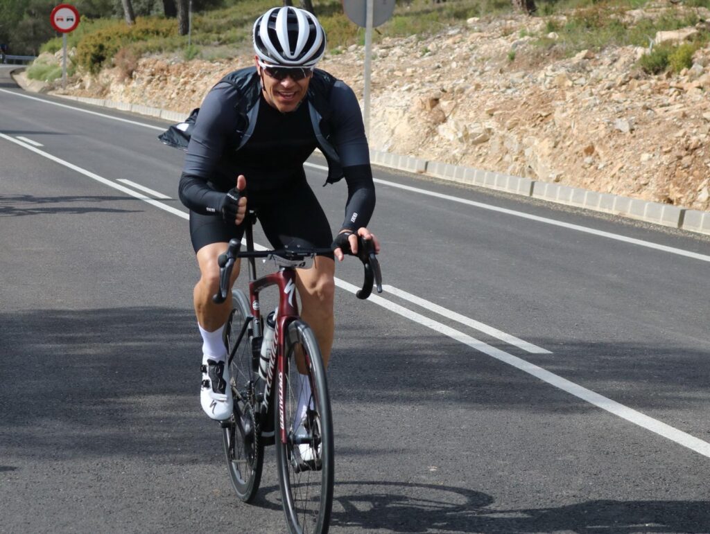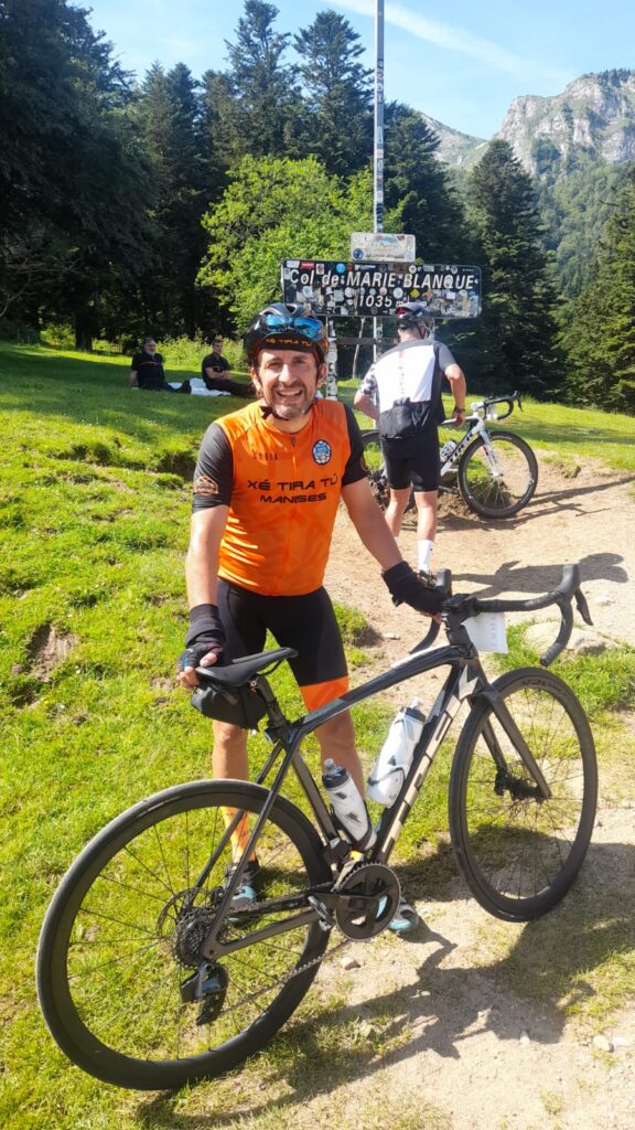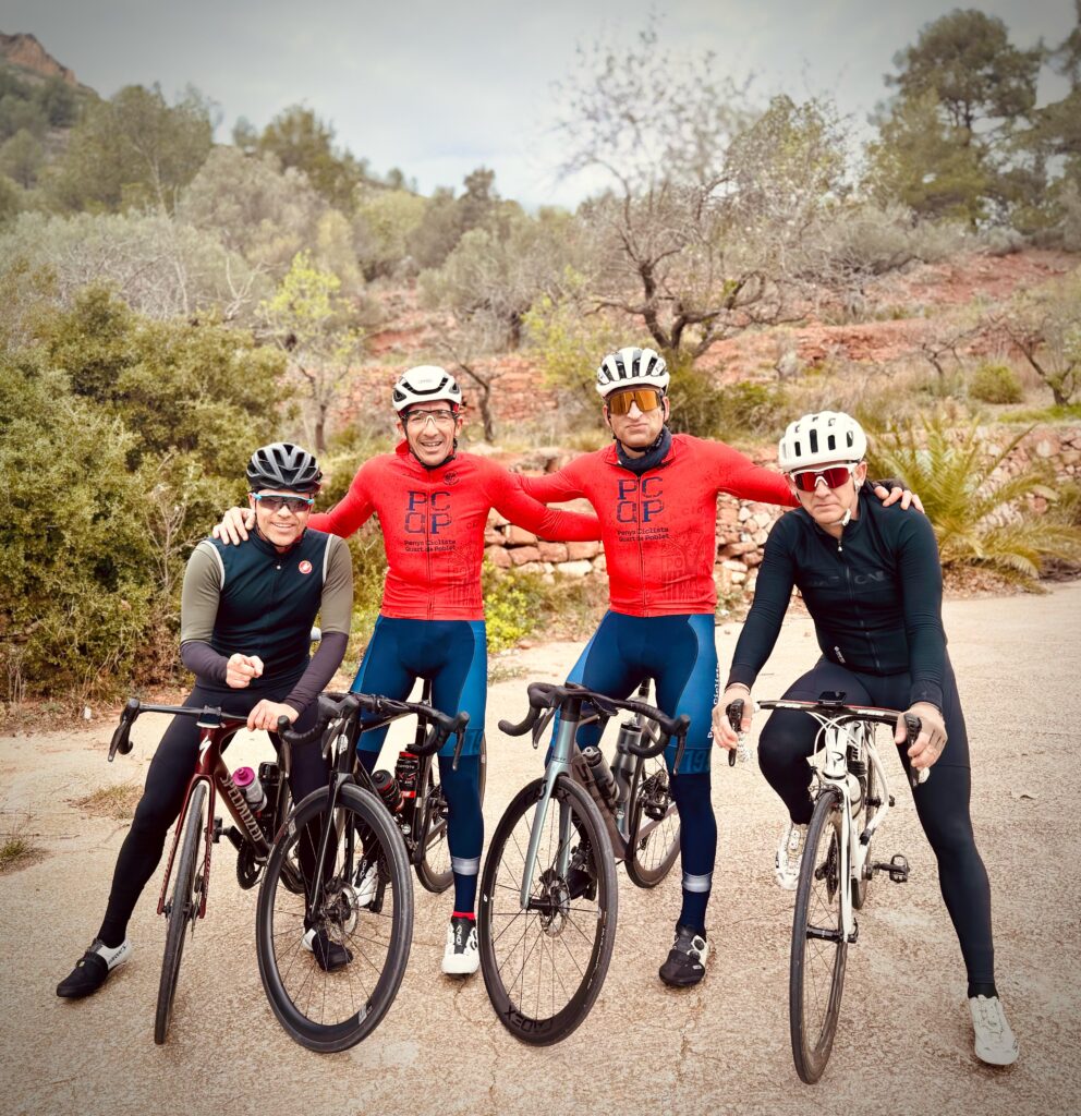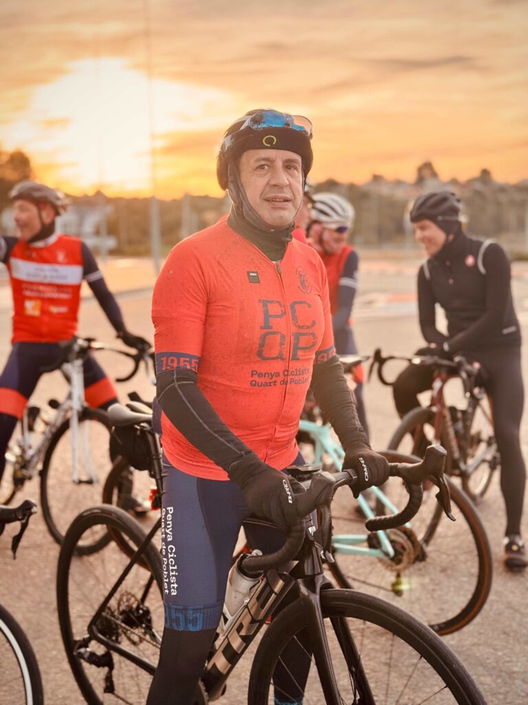 Mi afición por el ciclismo empezó desde niño siguiendo la Vuelta a España y el Tour de Francia por televisión. Mi equipo preferido era el Kelme con Vicente Belda, Pepe Recio, etc., un equipo de la terreta. Aunque de joven jugué al fútbol en el Quart… Luego te retiras con 30 años y comienzas a salir en btt con los amigos y acabas pasándote a la carretera porque es lo que más te gusta y te sientes más cómodo.