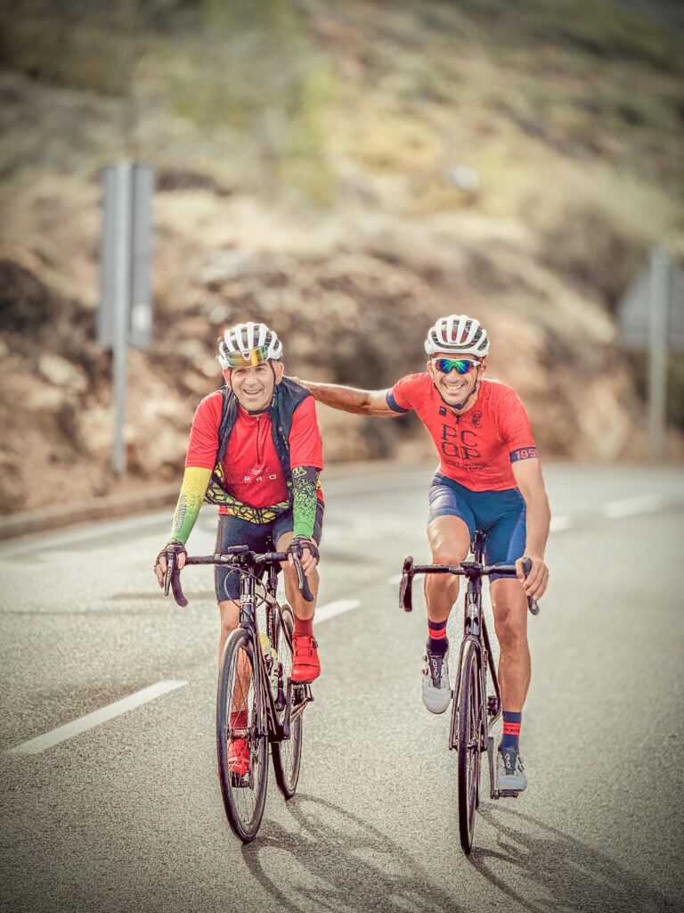 Mi primera bicicleta de carretera llegó como regalo de comunión, una BH. En mi barrio, tuve el placer de tener como vecino al eterno Sr.D. Pepe Company. Además tuve la suerte de criarme (colegio, instituto, y demás) junto al Sr.D. Tomás Lozano, desde los 3-4 años somo amigos. Poco más que añadir. Comencé haciendo otro deporte pero me lesioné y una de las terapias de recuperación (operación de rodilla) era la bicicleta… ahí me entró el “veneno” de la bicicleta. Siendo sincero, no he tenido nunca mucha continuidad (temporadas de poca bici por temas familiares y de trabajo) pero siempre con la ilusión de “volver”, intentando coger la forma mínima para poder “ir a rueda”, con vuestro permiso, por supuesto…